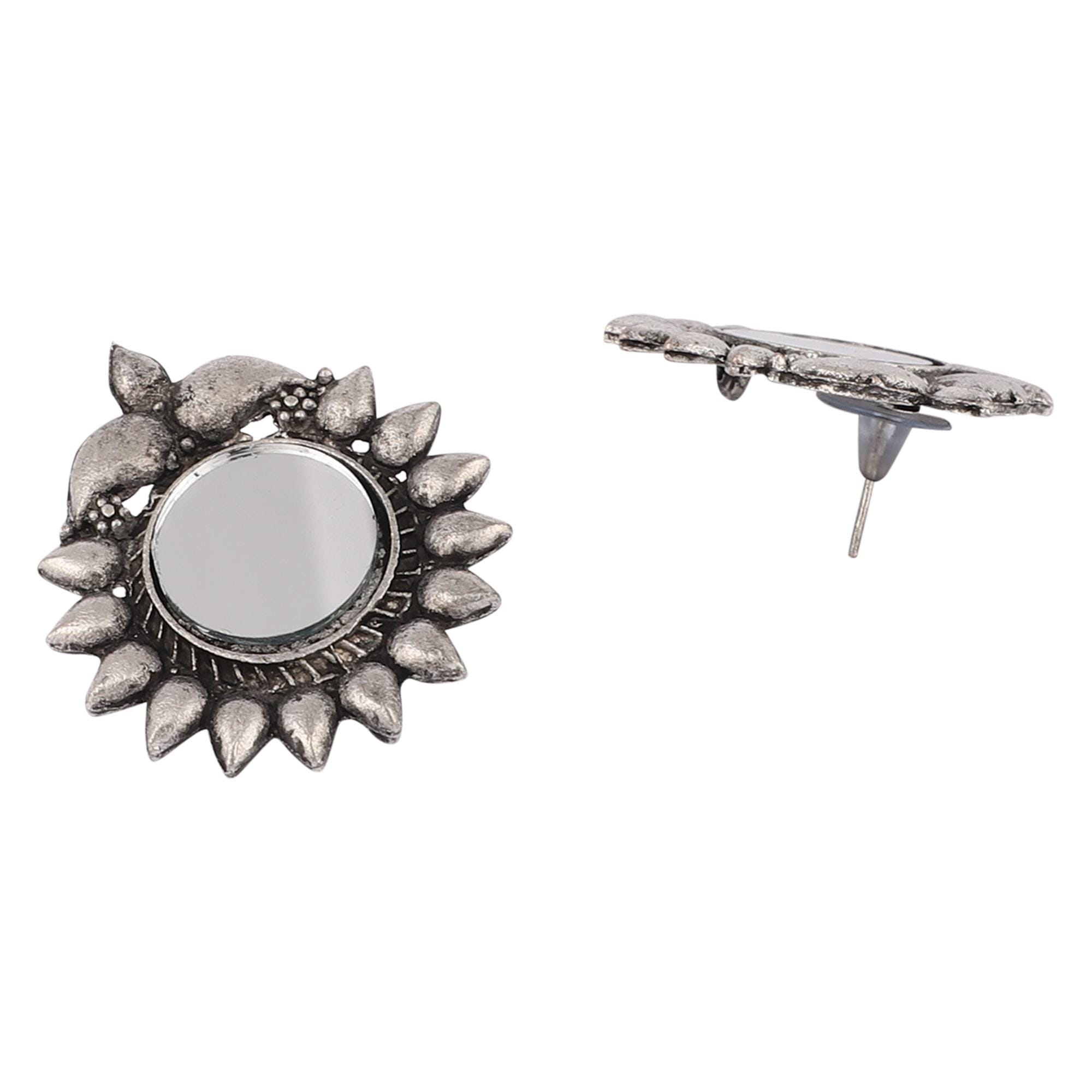 Embrace your inner bohemian with this stunning German silver necklace set. This intricate necklace features a cascading design adorned with oxidized silver accents and delicate threadwork. The matching earrings complement the necklace perfectly. This versatile set is adjustable for a comfortable fit and suitable for any occasion, from casual outings to festive celebrations. Experience the allure of tribal elegance with this handcrafted masterpiece.