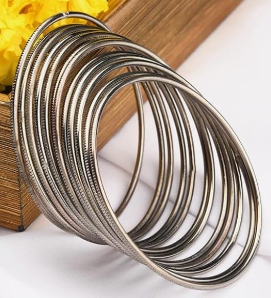 Silver Tone Oxidised Bangles Set of 12.